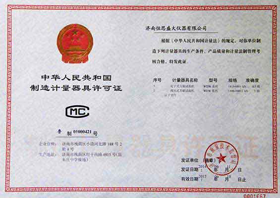 • 制造計量器具許可證
