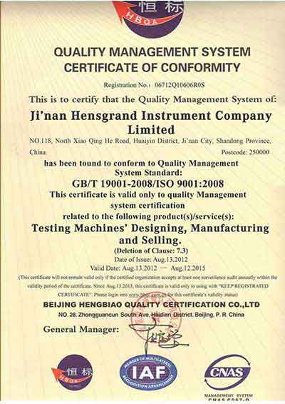 • 質量管理體系認證證書